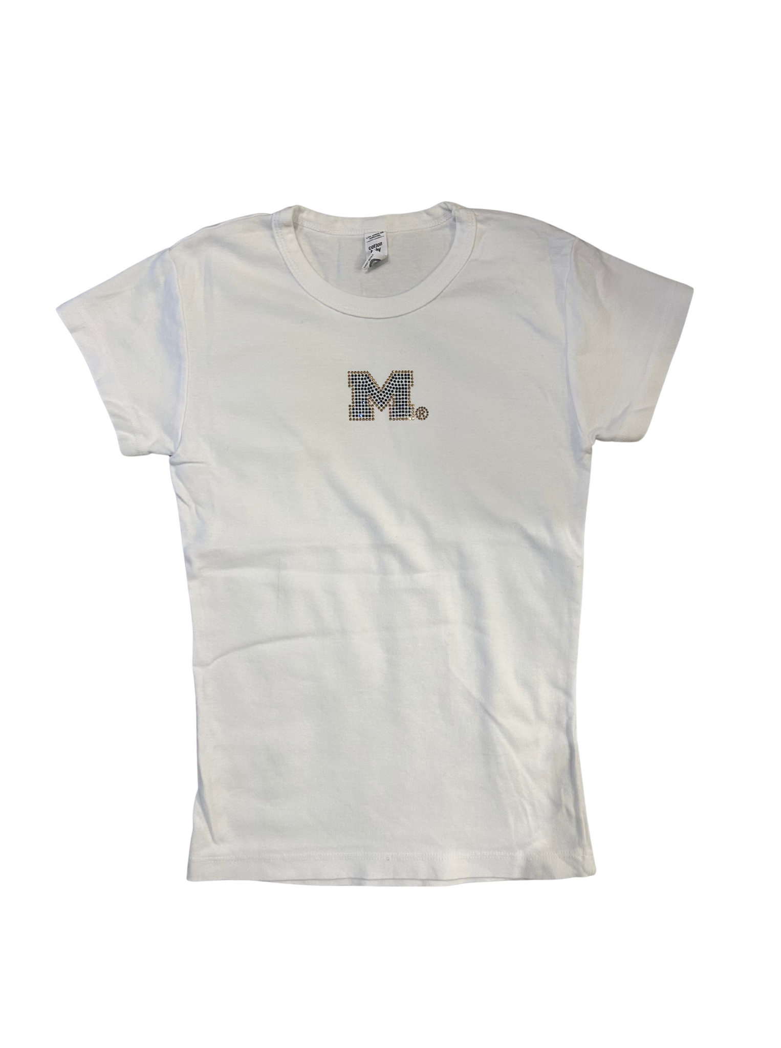 Get ready to show off your team pride with our Rhinestone Heritage Tee. Made from a comfortable 100% cotton. Our heritage tee is form fitting and hip length making it the perfect pairing for low rise jeans. This rhinestone design that will surely catch everyone's attention.