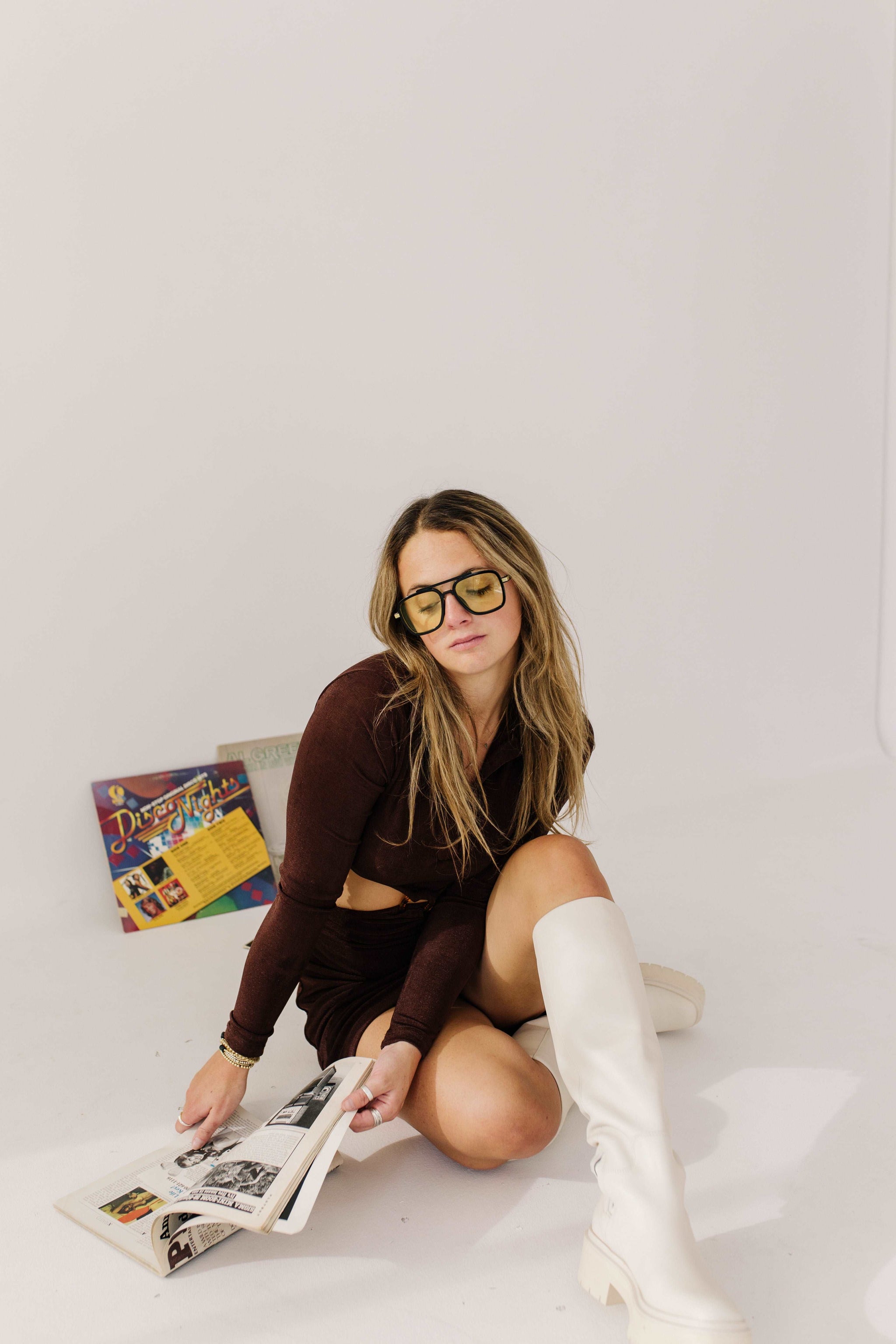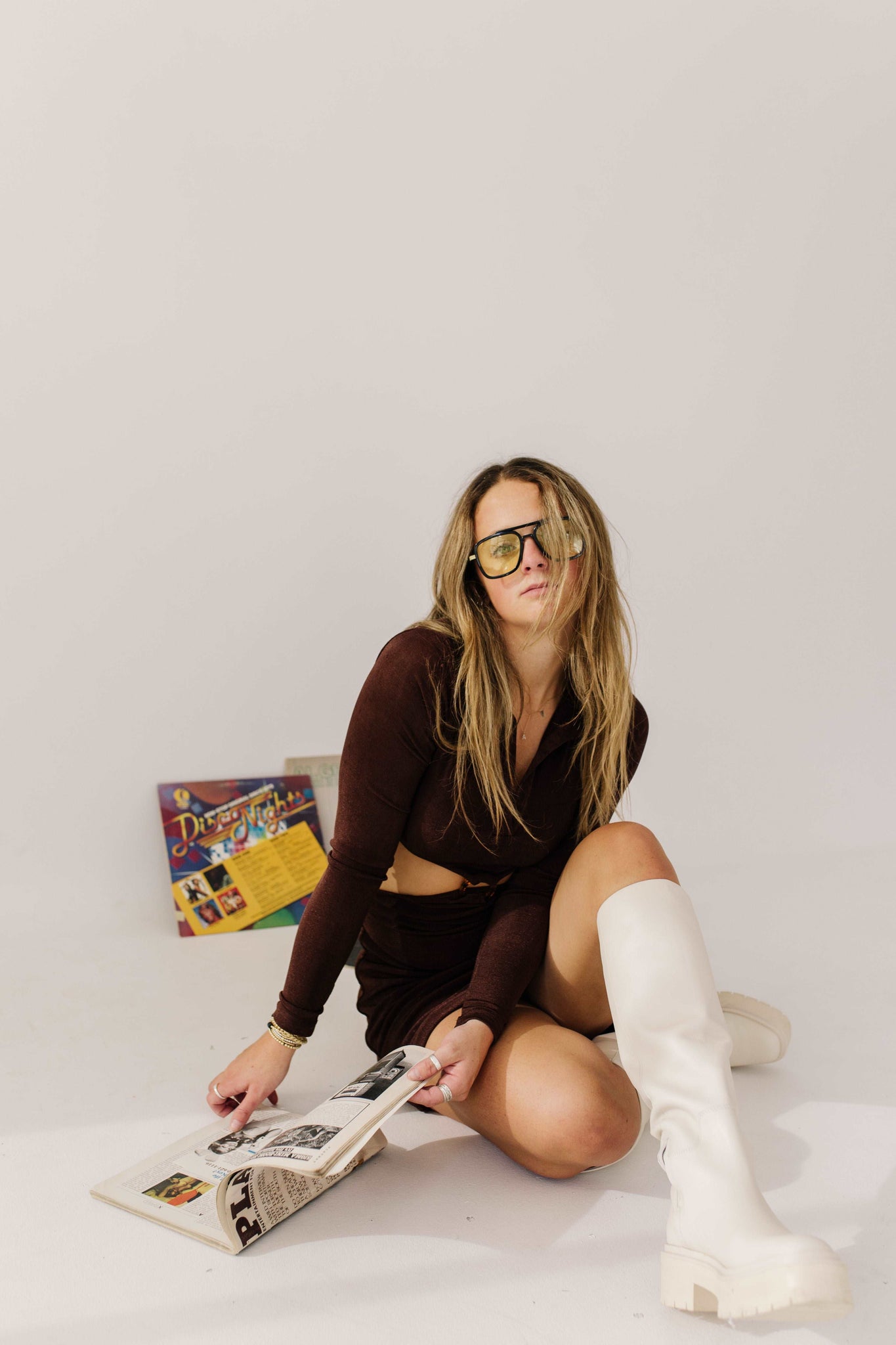 Kill your look in this long sleeve slinky dress with an o ring cut out center and a flattering bias fit.