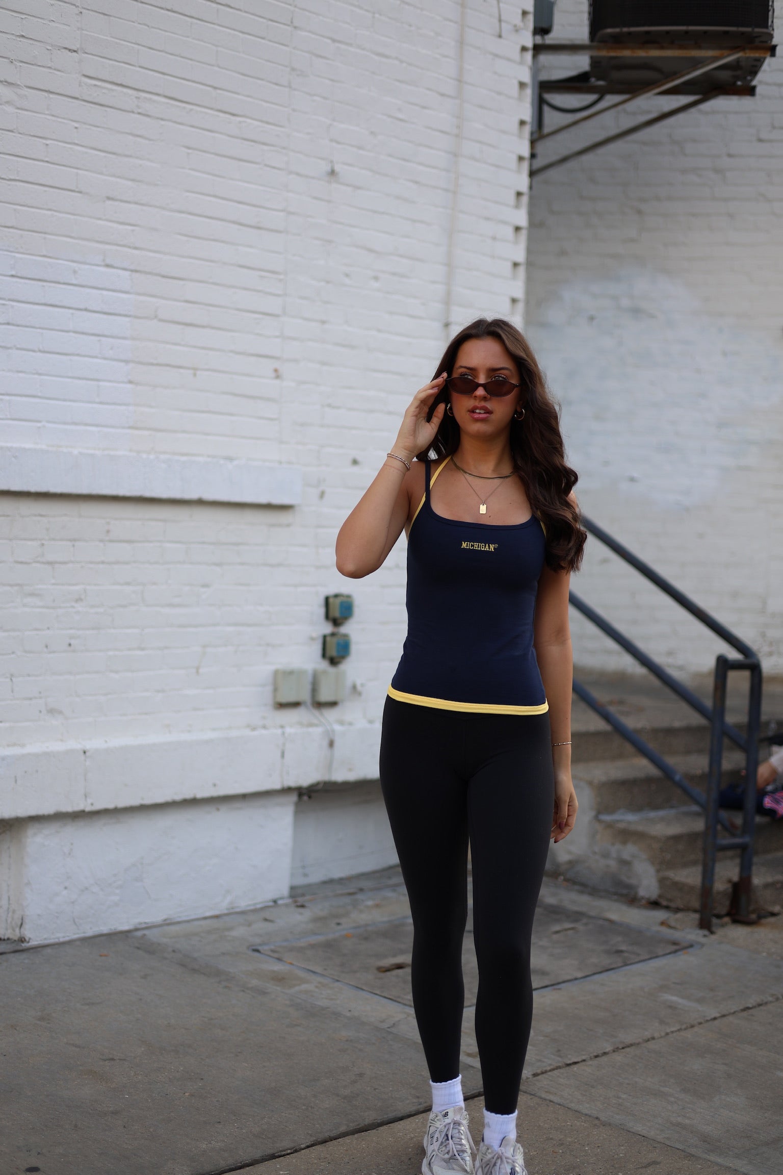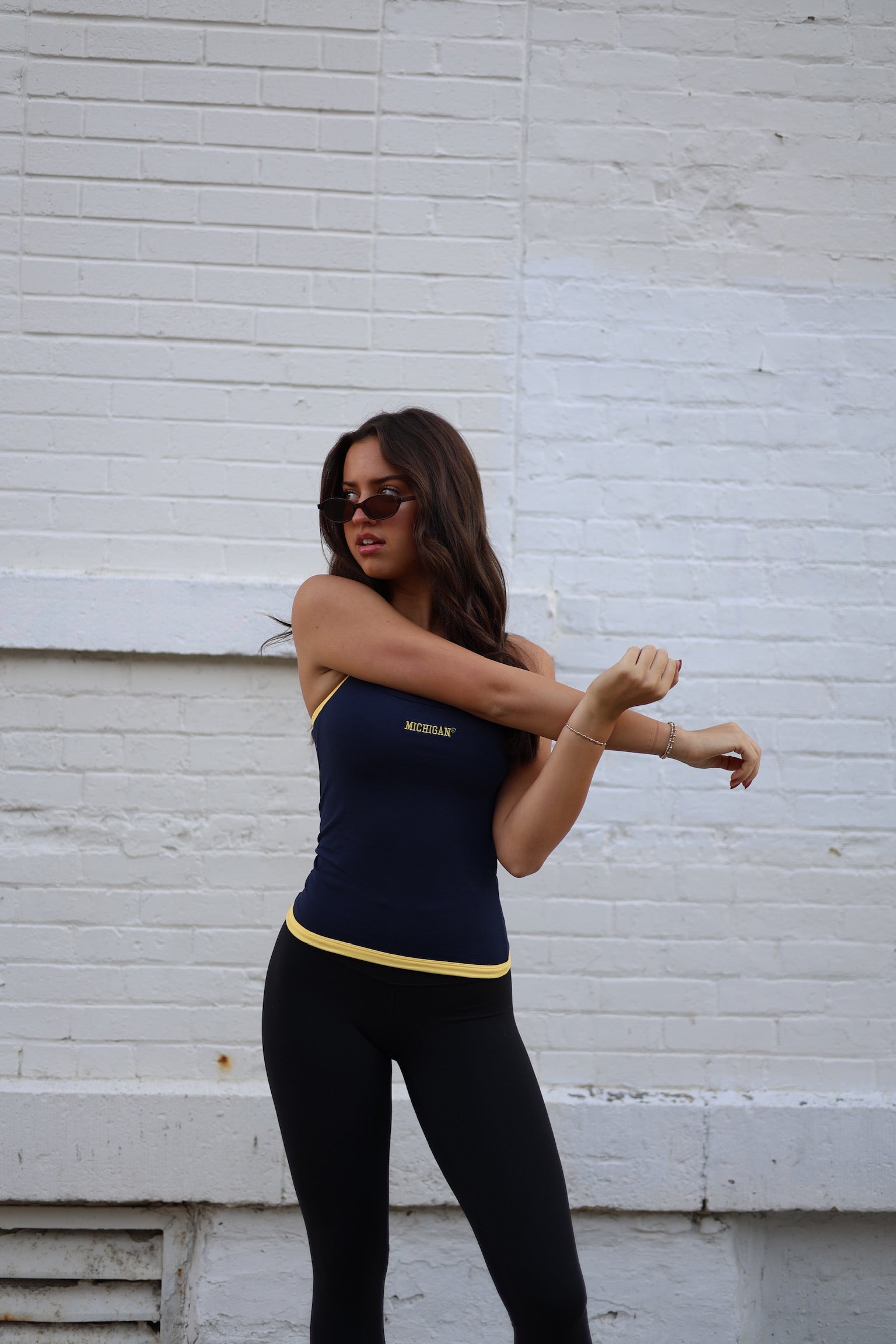 Stand out at the game with the Michigan Double Strap Tank! This stylish tank features a unique double strap design and embroidered logo.