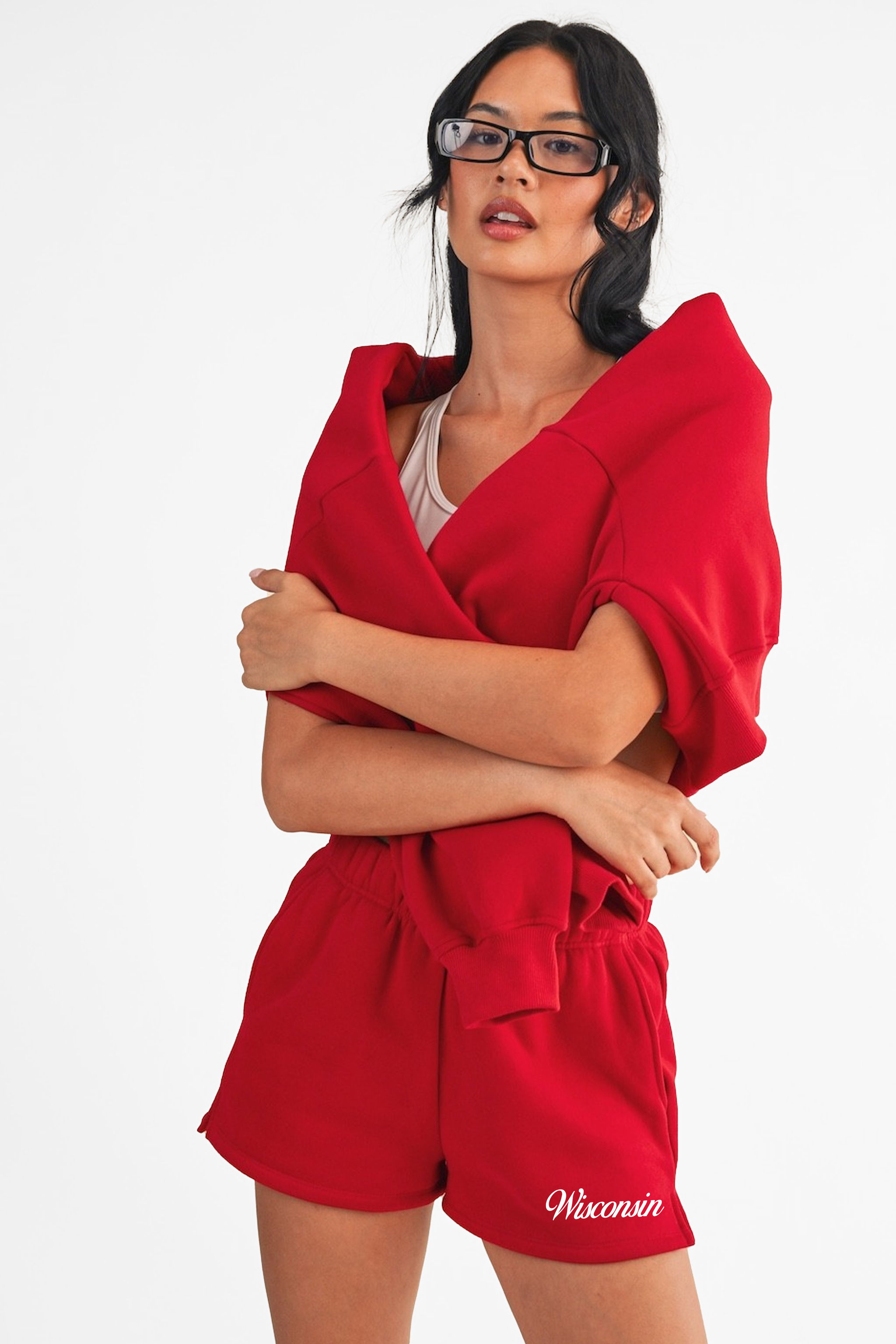 Slip into comfort with our Wisconsin Script Sweat Shorts, designed for those laid-back days when style meets ease. Crafted from soft sweatshirt fabric, these shorts feature practical side pockets to keep your essentials close. The relaxed fit pairs effortlessly with our Script Crop Crew or Full Zip for a coordinated look that feels as good as it looks. Perfect for lounging, running errands, or casual hangouts.